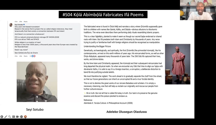 Odù Ifá and the Islamic Religion Ọlábíyi Babalọlá Yáì, Wútùwútù Yáákí Awo Babalọlá Adébóyè Ifátóògùm Ifá Divination Poems on Islam Òrìṣà Devotion Webinar #504 from eOrisa